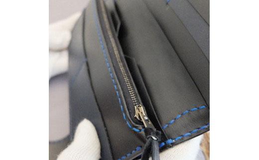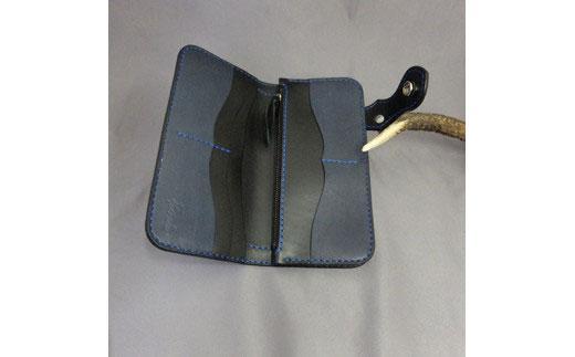 内側は藍染め革と黒サドルレザーの2色を使い陰陽な雰囲気を醸し出しております。