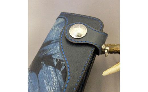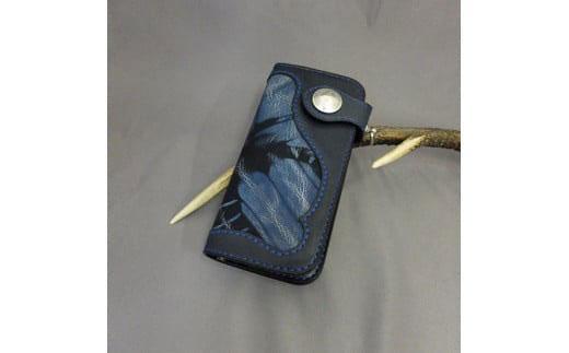 阿波レザーコンチョ付き本藍絞り染め縦長財布 PRF-SI