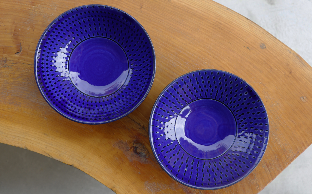 鮮やかな瑠璃色の器は、サラダなど自然素材のお料理と相性が抜群。