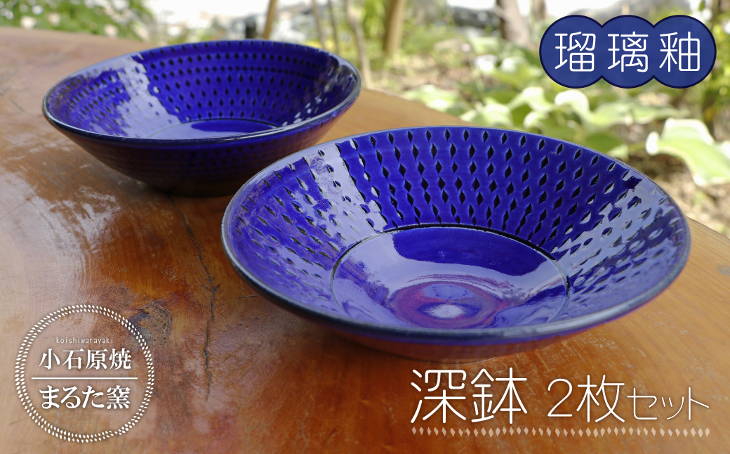 飛び鉋 深鉢(瑠璃釉) 2枚
