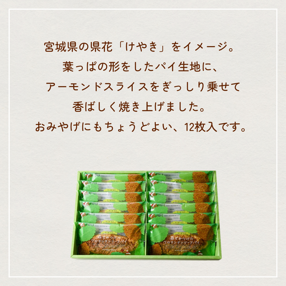 パイ生地(小麦粉、バター、食塩)(国内製造)、フロランタンベース(ぶどう糖、砂糖、植物油脂、全粉乳)、アーモンド、砂糖、バター、食塩/乳化剤、クエン酸、香料、(一部に小麦・乳成分・アーモンド・大豆を含む)