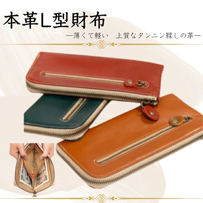 柔らかい本革が触っていて心地よく、とても薄くて軽い、使い勝手の良いL型財布です。