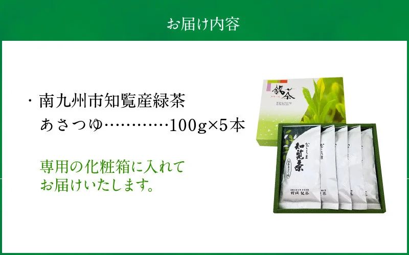 南九州市知覧産緑茶「あさつゆ」100g×5本