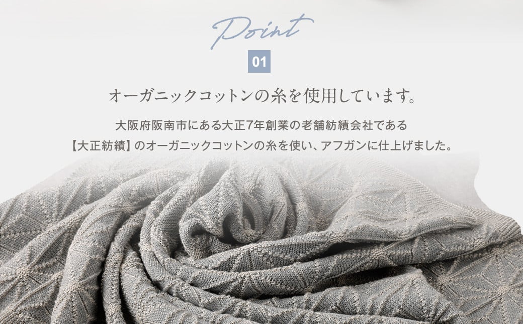 おめでたい縁起柄である麻の葉模様を編みで表現した肌触りのよいアフガンです。