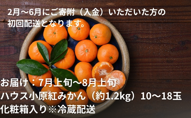 7月上旬~8月上旬:【ハウス小原紅みかん】(約1.2kg)10~18玉 化粧箱入り※冷蔵配送