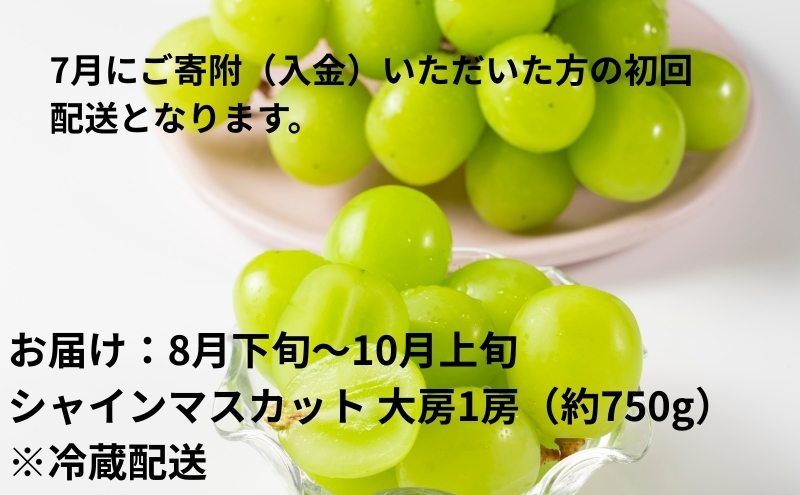 8月下旬~10月上旬:【シャインマスカット】大房1房(約750g)※冷蔵配送