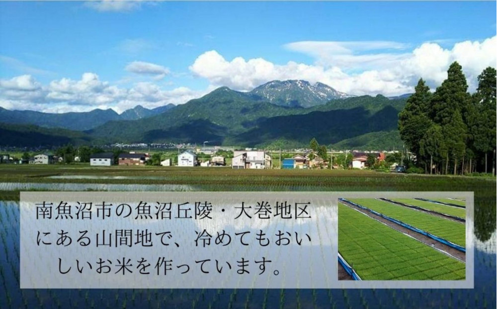 越後三山を一望できる魚沼丘陵の山間地の田んぼで作り続けています。