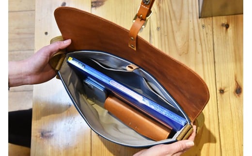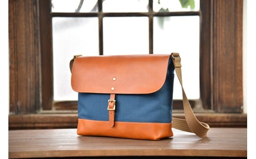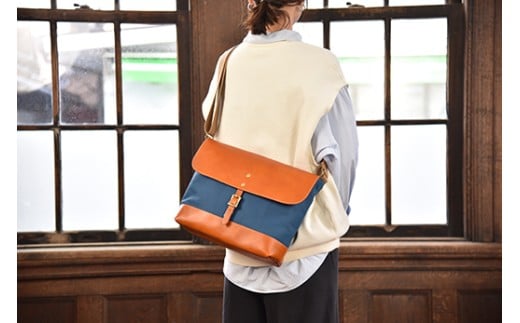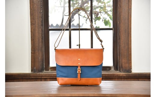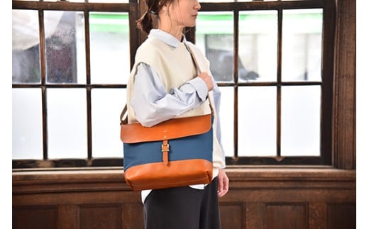 近江牛レザーと滋賀県産帆布を使ったショルダーバッグ(Lサイズ) 1個