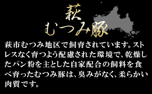 その見蘭牛とパンを食べて育った甘い肉質が特徴の萩特産豚肉「むつみ豚」で作る、