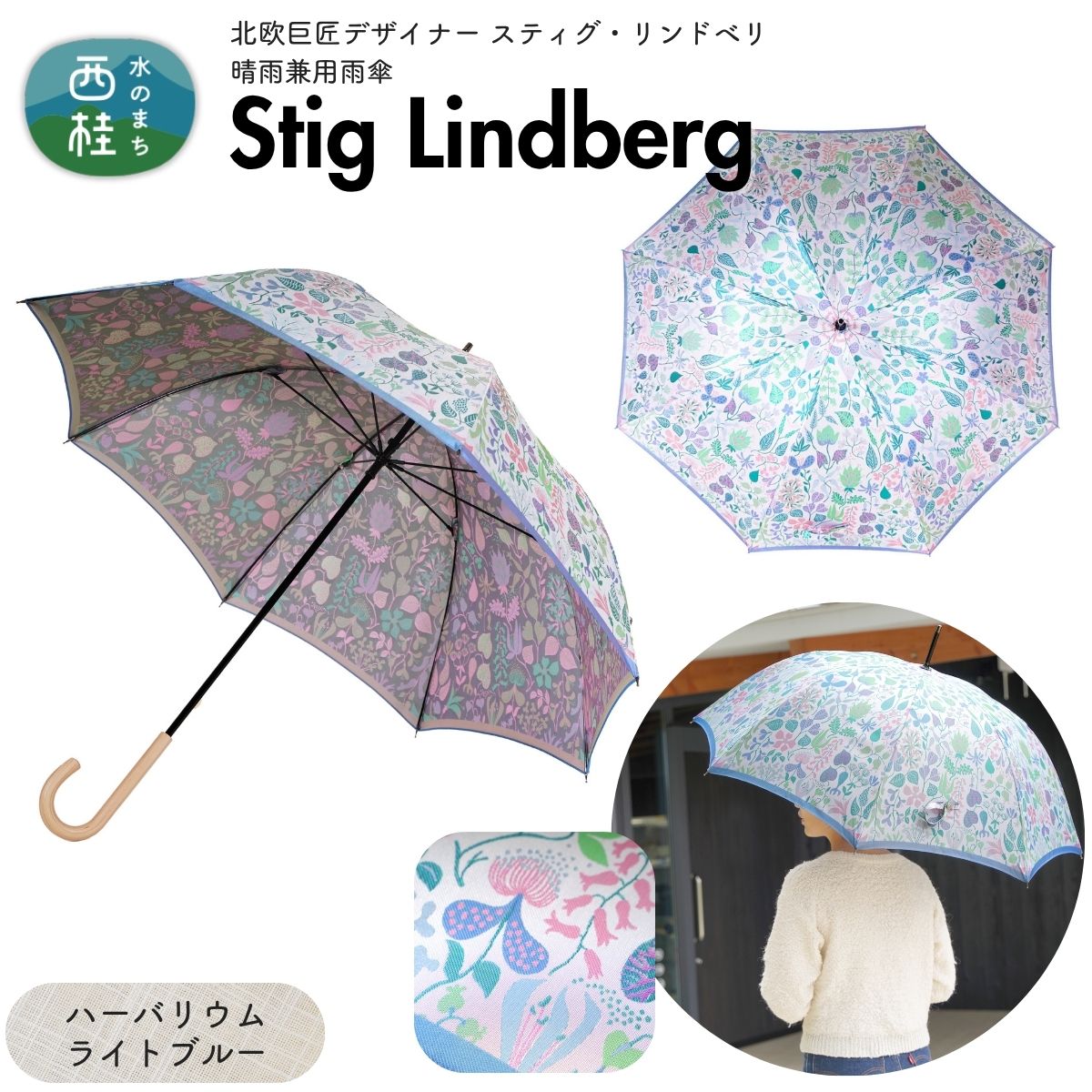 高級織物傘【婦人長傘】 スティグ・リンドベリ 晴雨兼用傘 ハーバリウム ライトブルー 北欧デザイン 傘 レディース 槇田ブランド / 雨具 雨傘 日傘 親骨60cm UVカット 8本骨 手開き UV加工 送料無料 山梨県 槇田商店【n0640-04_mak】-[n0640-04_mak]