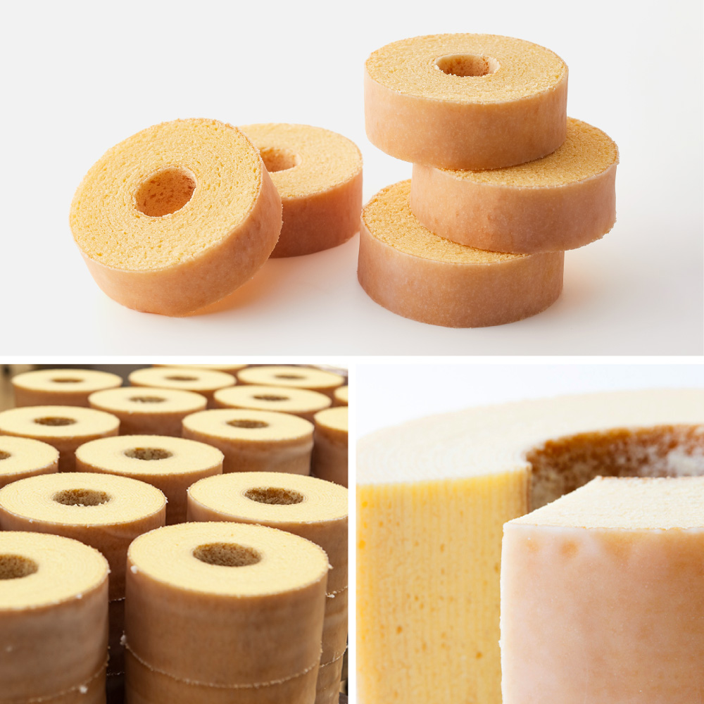 しっとりやわらかな食感は、日本人の好みにあうよう試作をかさねる日々から生まれたもの。昔ながらの製法で一層一層ていねいに職人が焼き上げる味わいは、長年ご好評いただく自慢の一品です。