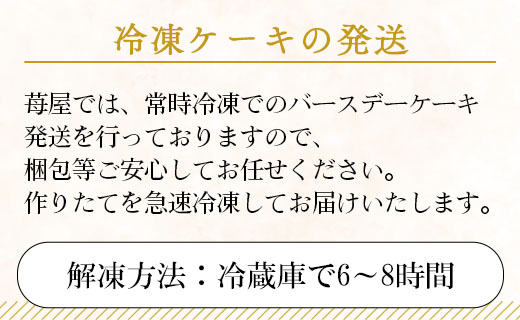 苺屋では、常時冷凍でのバースデーケーキ発送を行っておりますので、梱包等ご安心してお任せください。