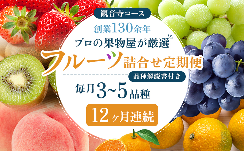 果物好きの、果物好きによる、果物好きのための詰め合わせ!をモットーに、その確かな視覚と味覚をもちまして、四季折々における、旬を見極めた観音寺産の厳選フルーツを3~5種類詰め合わせ、定期便でお届け致します。