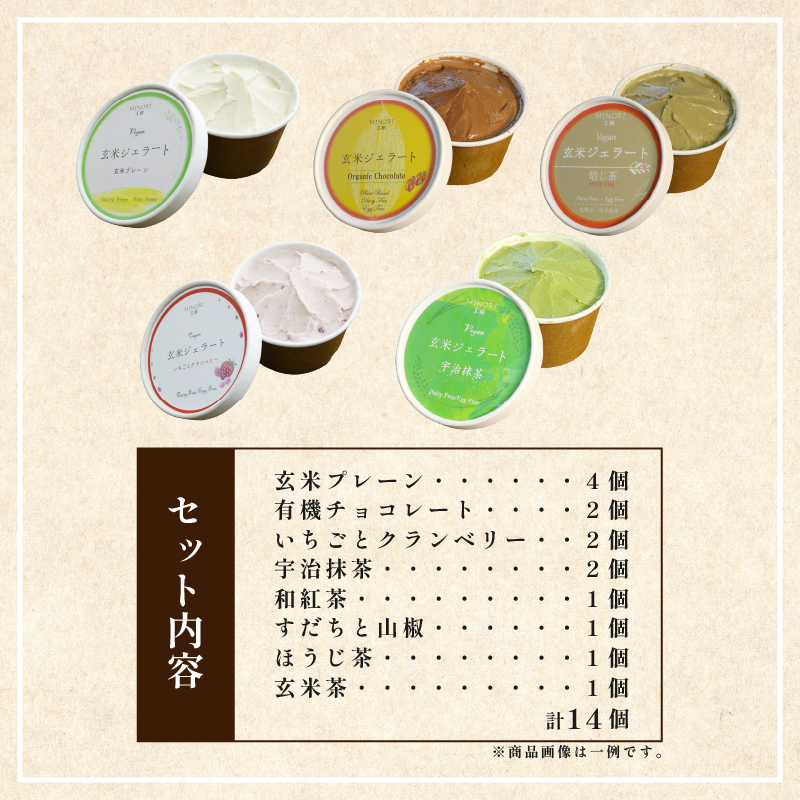 玄米 ジェラート 14個 セット 8種 定期便 ジェラート デザート スイーツ アイス プレーン チョコレート いちご クランベリー 抹茶 和紅茶 すだち 山椒 ほうじ茶 玄米茶 無添加 有機 ヴィーガン グルテンフリー ギフト 贈答 京都 井手町