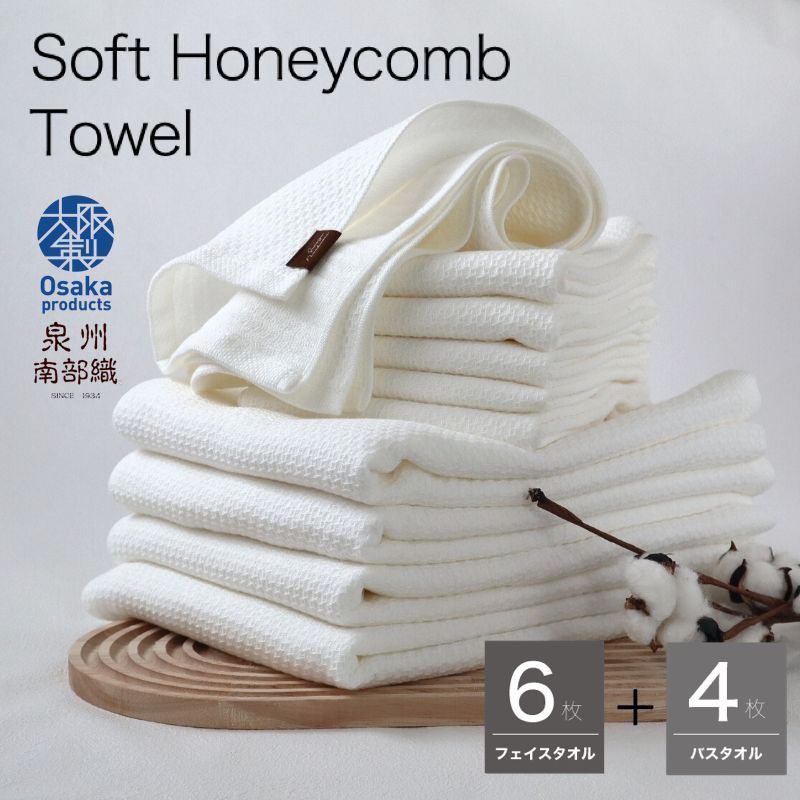・泉州南部織ソフトハニカムフェイスタオル 6枚