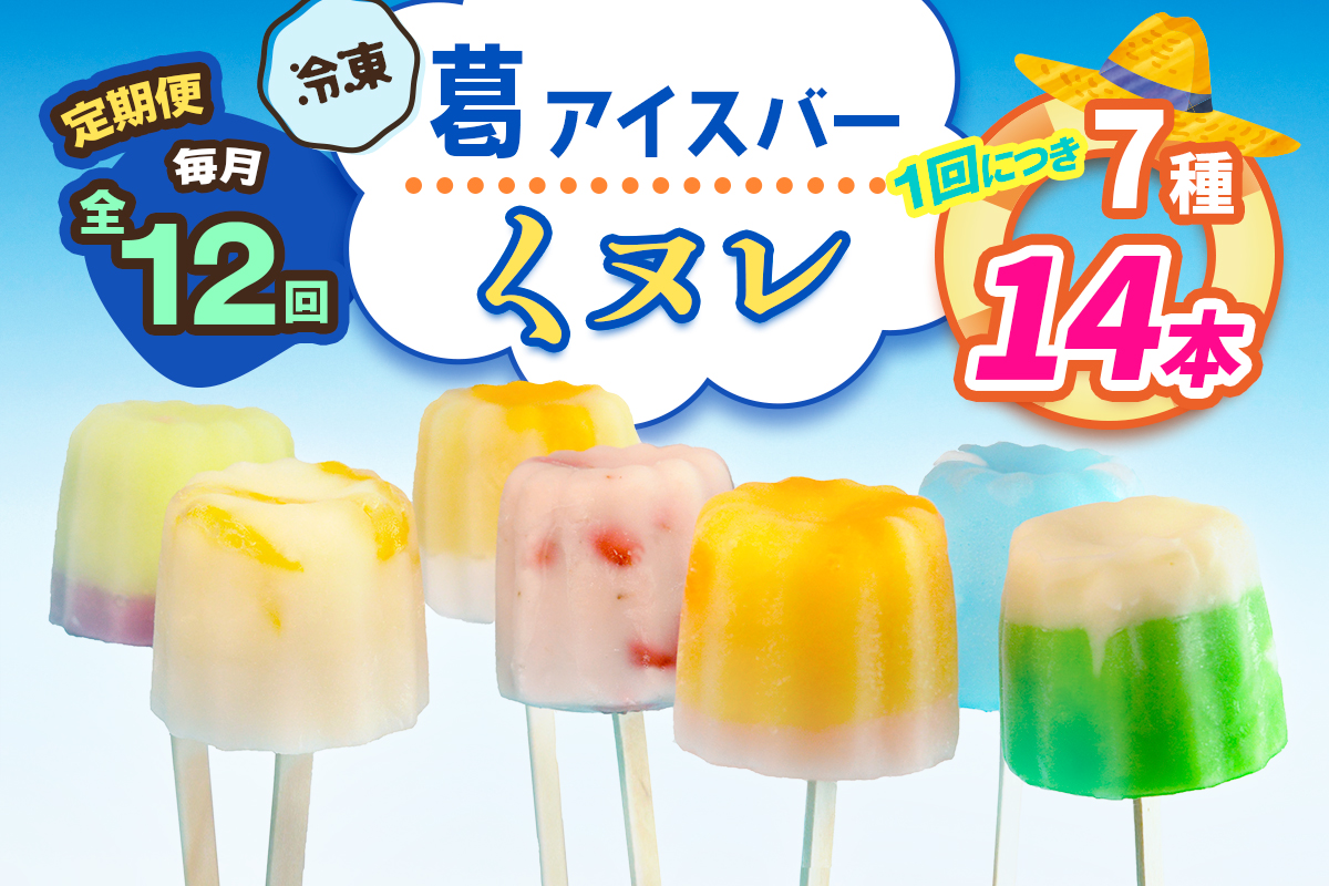 12ヶ月間毎月、葛アイスバー くヌレ (7種14本) をお届けする定期便です。