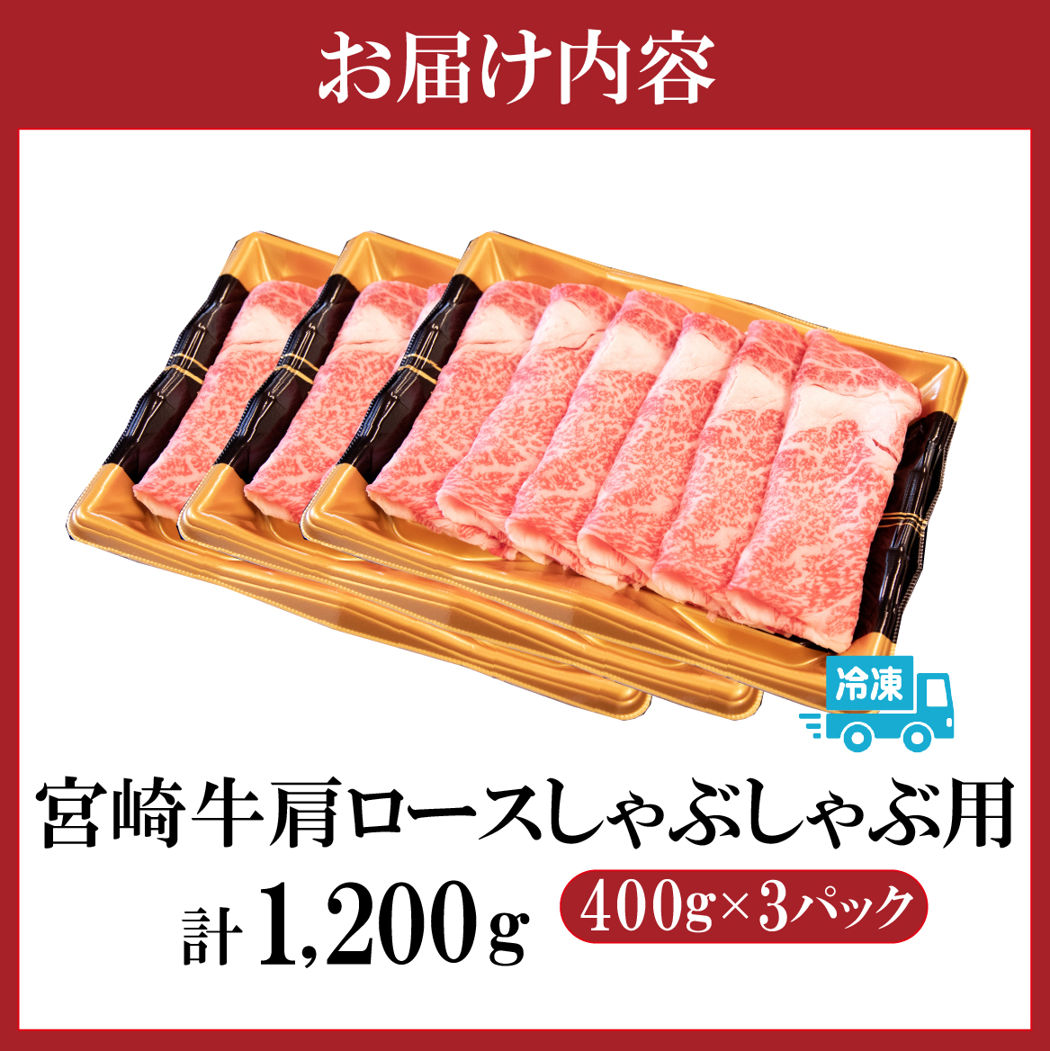 A4等級以上宮崎牛肩ロースしゃぶしゃぶ 400g×3P