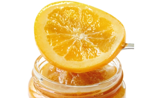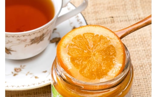 輪切りにした国産ネーブルオレンジを、皮までやわらかく煮込んだ、果実感が楽しめるジューシーなジャム。