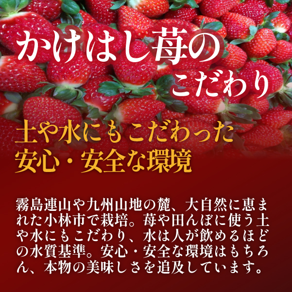 土や水にこだわり、安心・安全な環境で大切に育てられたいちごです。
