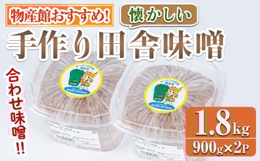 【0095931a】物産館おススメ!東串良町産 懐かしの手作り田舎味噌(合わせ味噌)(計1.8kg・900g×2P) 味噌 みそ 麦みそ 合わせ味噌 合わせみそ 調味料 味噌汁 みそ汁 和食 【東串良物産館ルピノンの里】