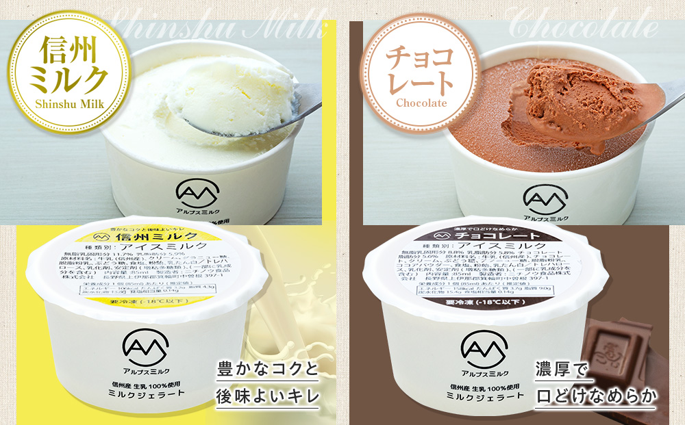 信州産 生乳を100%使用した牛乳を使った、コクのあるジェラートです。
