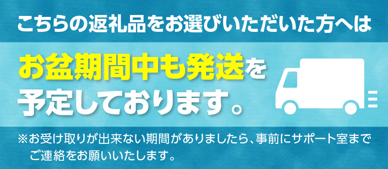 ・お礼品の在庫状況により、お礼品ページ内表記のお届け時期以上に時間を頂戴する場合がございますのでご理解の程宜しくお願い致します。
