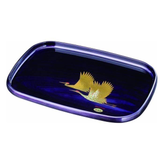 紀州漆器職人が丁寧に仕上げた【長手盆 PC 42cm 紫雲杢 雅鶴】です。