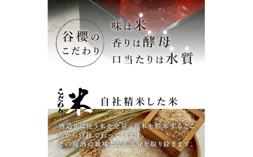 純米吟醸 谷櫻:酒造好適米を55%に磨き米のうまみが生きた口当たりの良い味わい。