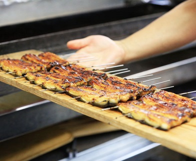 そのうなぎを職人が裂き・串打ち・白焼き・蒸し・タレをつけて3度焼きし、関東風に焼き上げました。
