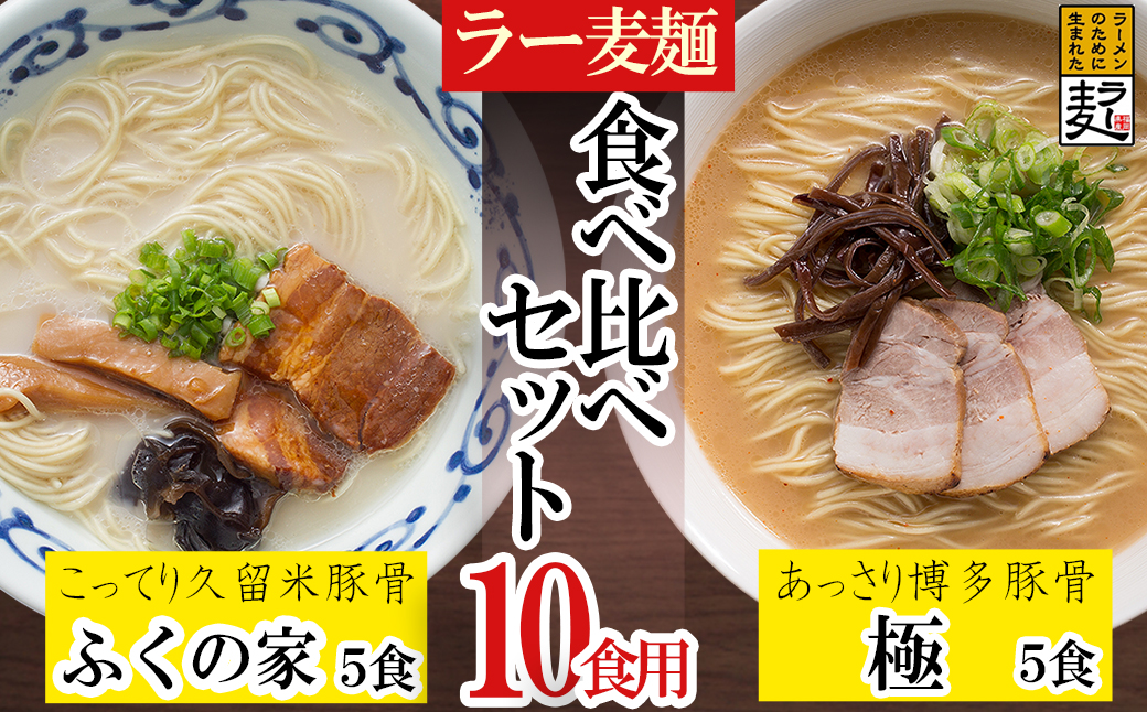 大人気福岡のとんこつスープ、“博多豚骨”と“久留米とんこつ”の食べ比べセット全10食です。