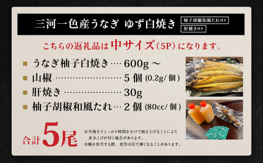・うなぎ柚子白焼き 5尾(合計600g~)