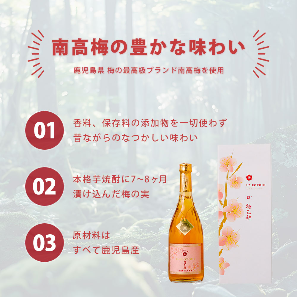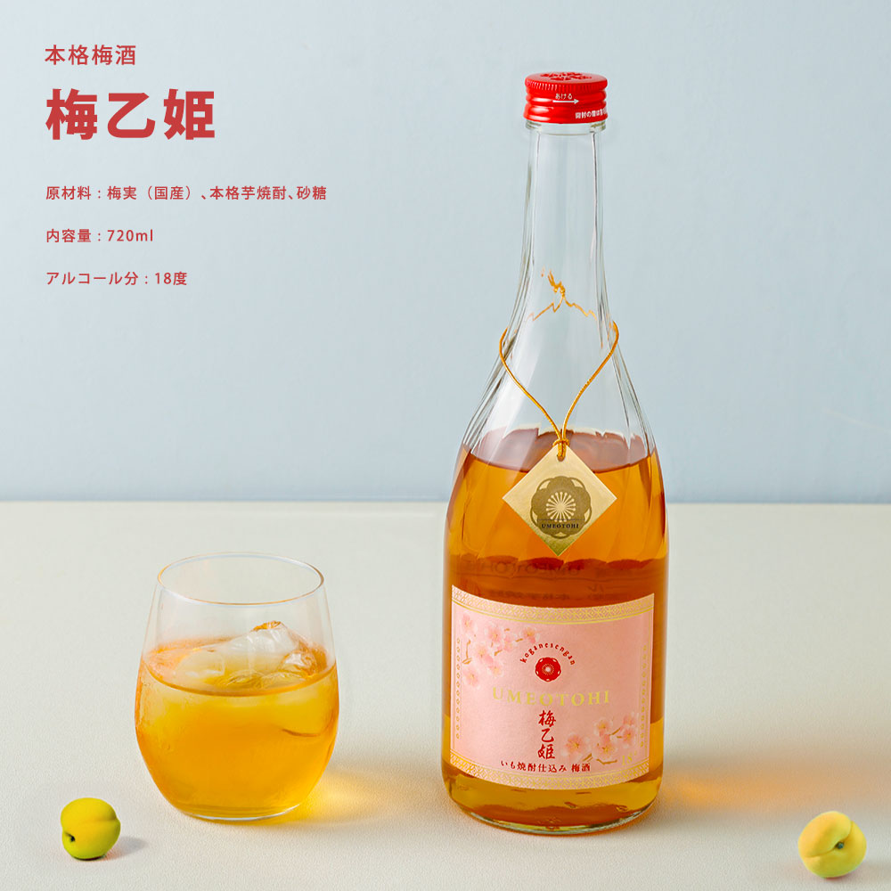 「梅乙姫」は鹿児島のさつま焼酎メーカー「小鹿酒造」と、農業を通じて共同開発したプレミアム梅酒。