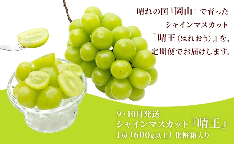 晴れの国『岡山』で育ったシャインマスカット『晴王(はれおう)』を、定期便でお届けします。