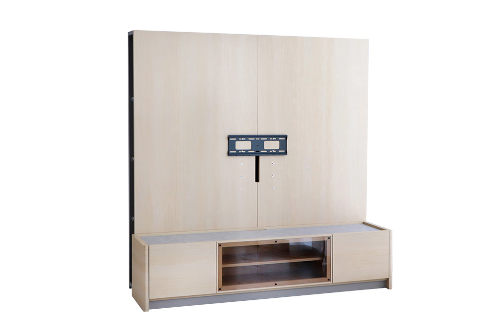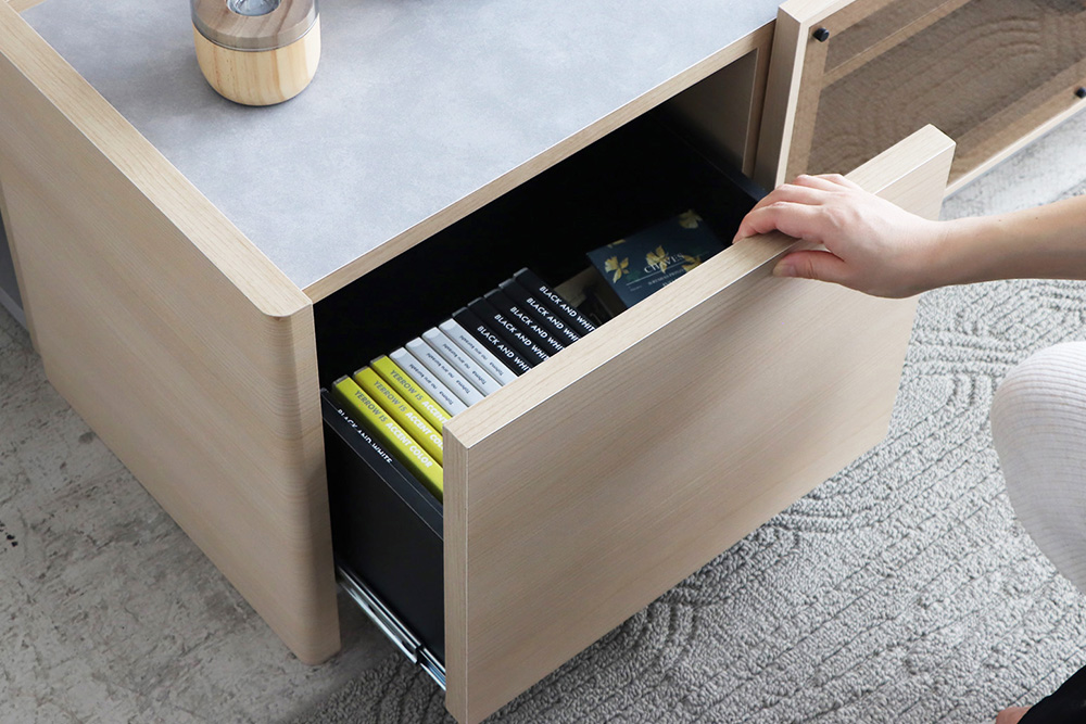 また、中央部は収納力の高い扉付きで、