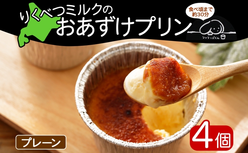 北海道・陸別町から「りくべつミルクのおあずけプリン プレーン4個」をお届けします。