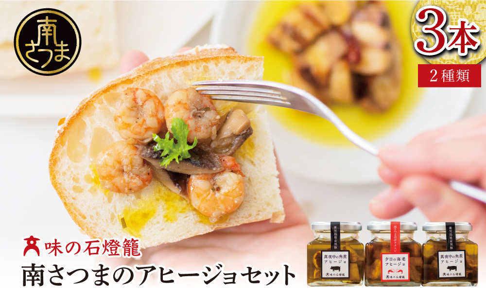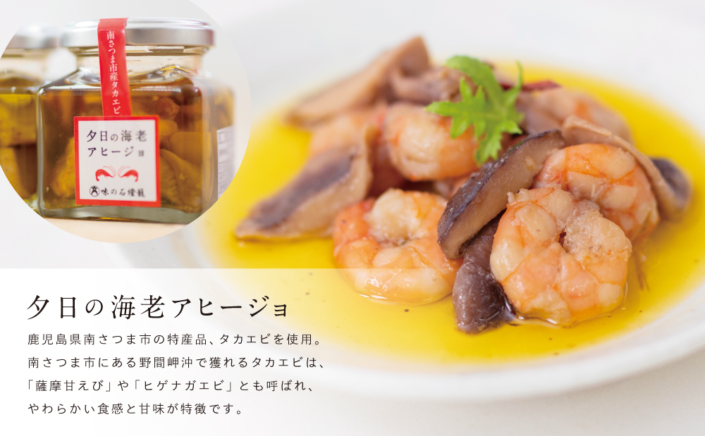 海老アヒージョ&黒豚角煮アヒージョ 2種類セット(3本)[期間限定]黒豚 たかえび ヒゲナガエビ 薩摩甘エビ オリーブオイル おつまみ おもてなし 鹿児島県産 国産 おかず 惣菜 ギフト 贈り物 贈答用 二見屋商店 味の石燈籠 大浦町 南さつま市-[27-V07]
