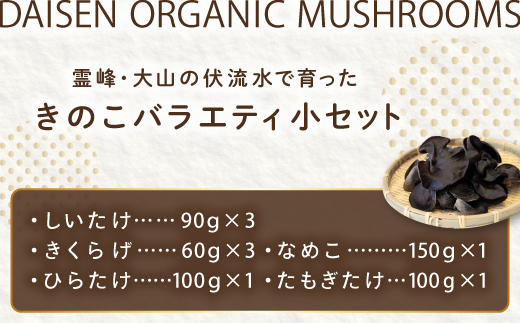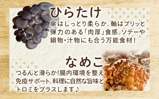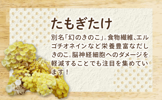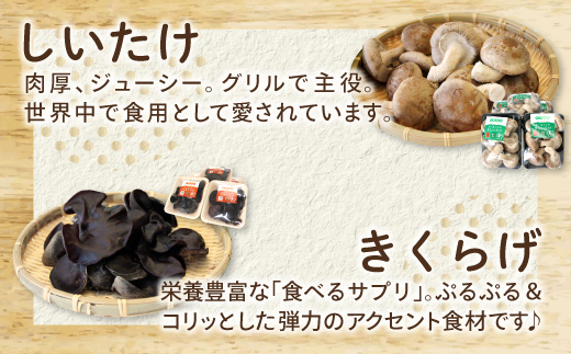 しいたけ、きくらげ、ひらたけ、たもぎたけ、なめこ