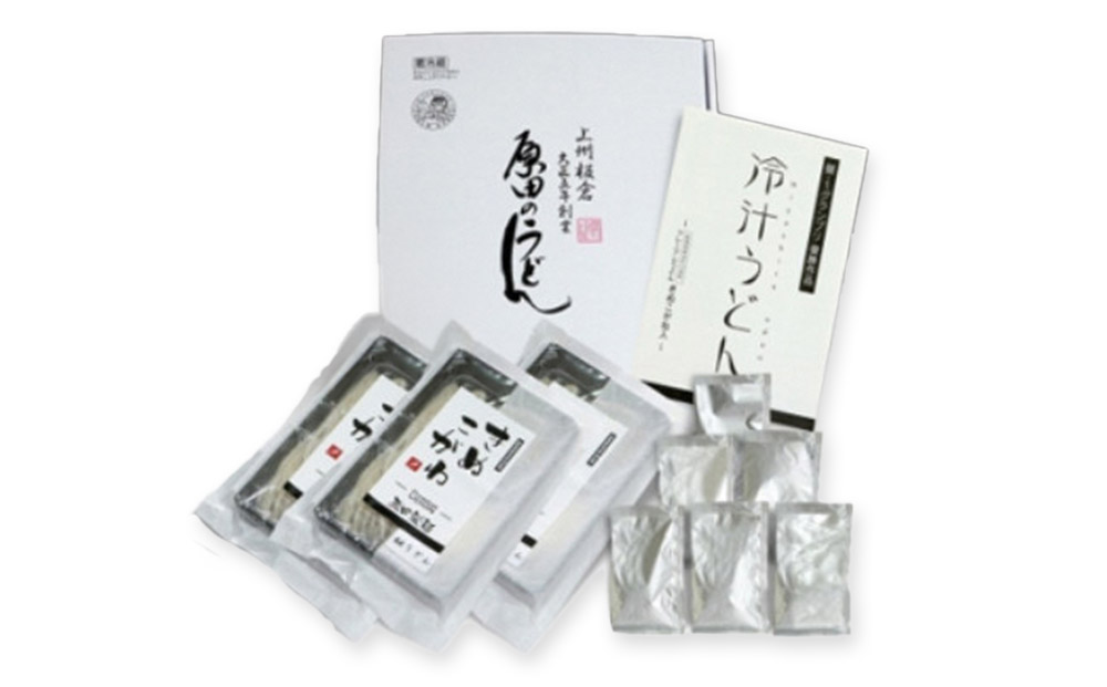 麺群馬県産地粉を100%使用。魚介ダシを加えた特製ゴマ汁でお召し上がりください。冷汁うどんは板倉の郷土食ですが、コクがあるのにスッキリした味わいに仕上げました。