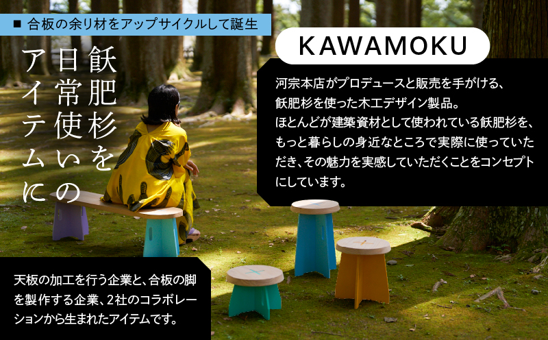 自然の風合いを持つ飫肥杉の天板に、カラフルな7色の脚の組み合わせをお楽しみいただけます。