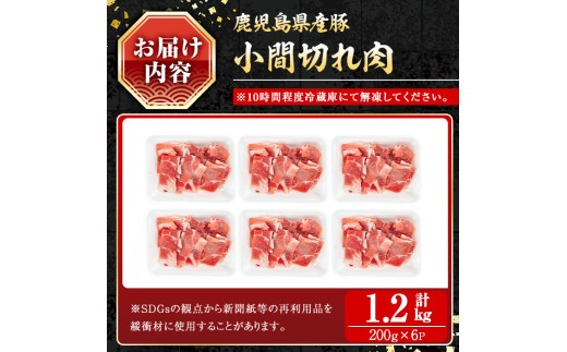 鹿児島県産豚 小間切れ肉 (1.2kg) 豚肉 バラ スライス【小迫ストアー】A866