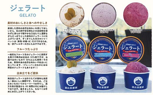 中でもぶどうは、小粒品種のデラウェアや大粒の高級ぶどうまで30種類以上を育てています。また、そのぶどうや加工したレーズンその他のフルーツや野菜などをふんだんに使用した手作り無添加の出来立てジェラートを販売しています。素材本来の味をご堪能ください。