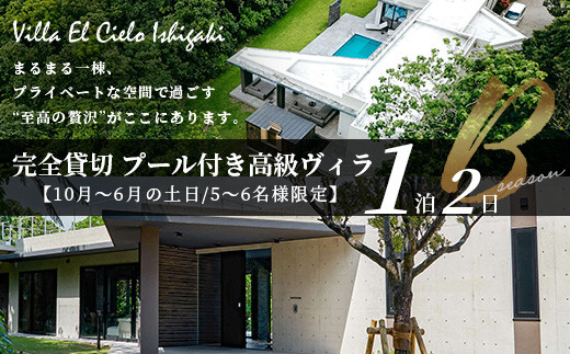 Villa el cielo Ishigaki ーLUNAー 完全貸切のプール付き高級ヴィラ 5~6名様でのご宿泊限定 10月~6月の土日 (Bシーズン) 1泊宿泊券