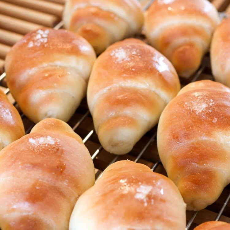・豆乳仕込みの塩ロール(2個):オーガニック小麦粉、有機豆乳、酵母(キウイフルーツ、りんご、季節のフルーツを含む)、パームオイル、四つ葉有塩バター、粗糖、はちみつ、塩、岩塩(ドイツ産)