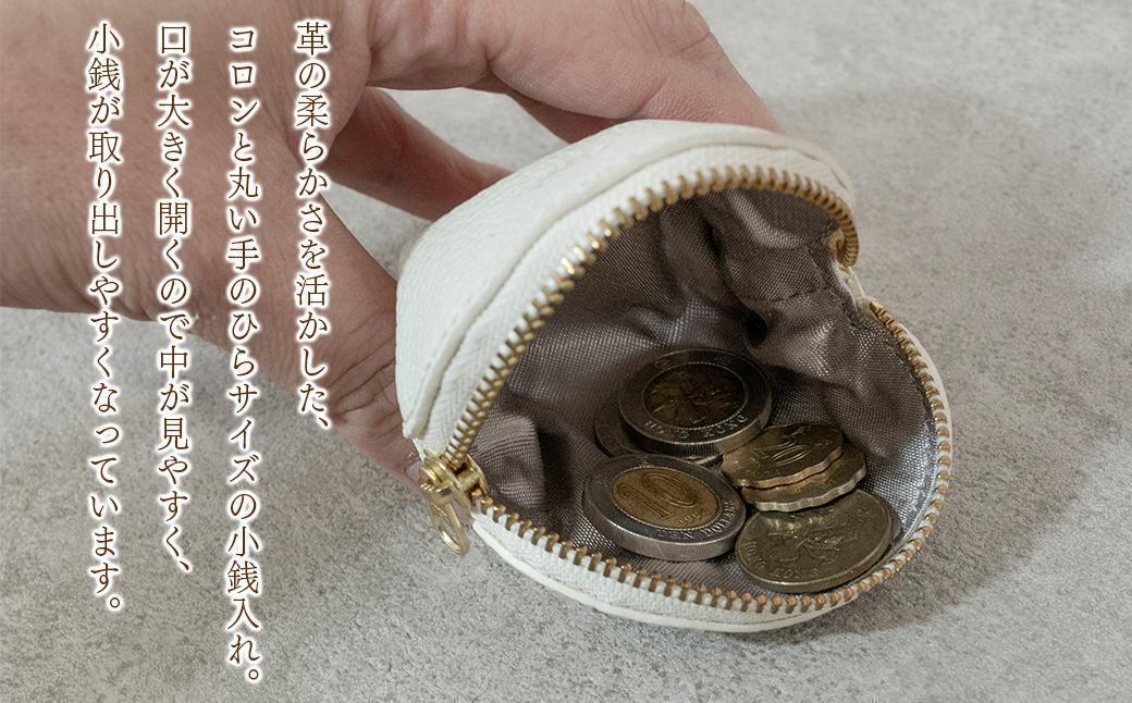 革の柔らかさを活かしたコロンと丸い手のひらサイズの小銭入れ。