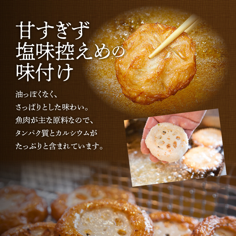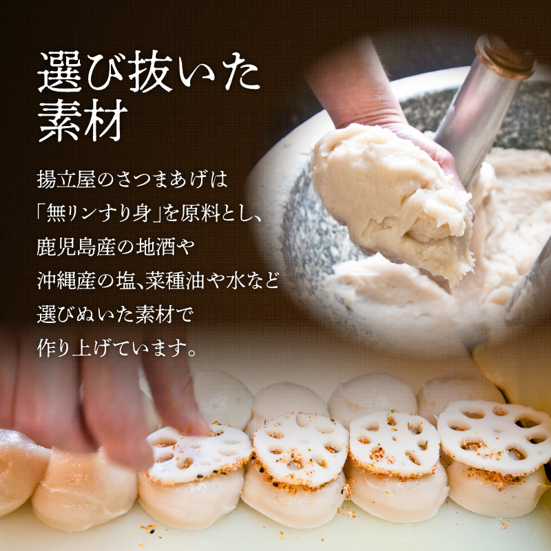 数種類の魚のすり身をブレンドする事によって、魚本来の味を楽しむことができ、鹿児島産の地酒や沖縄産の塩、菜種油や水など選び抜いた素材で作り上げています。