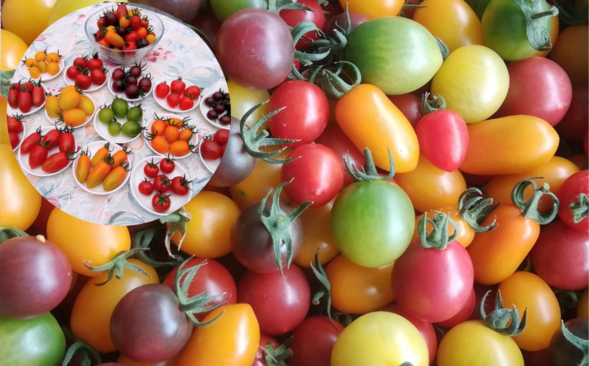 8月:丹精こめて育てたミニトマト20種類(トマトベリー、アイコ、イエローアイコ、フラガール、カプリエメラルド、イエローミミ、トスカーナバイオレット、フラガールオランジェなど)の中から、5種類以上のミニトマトをお届け致します!