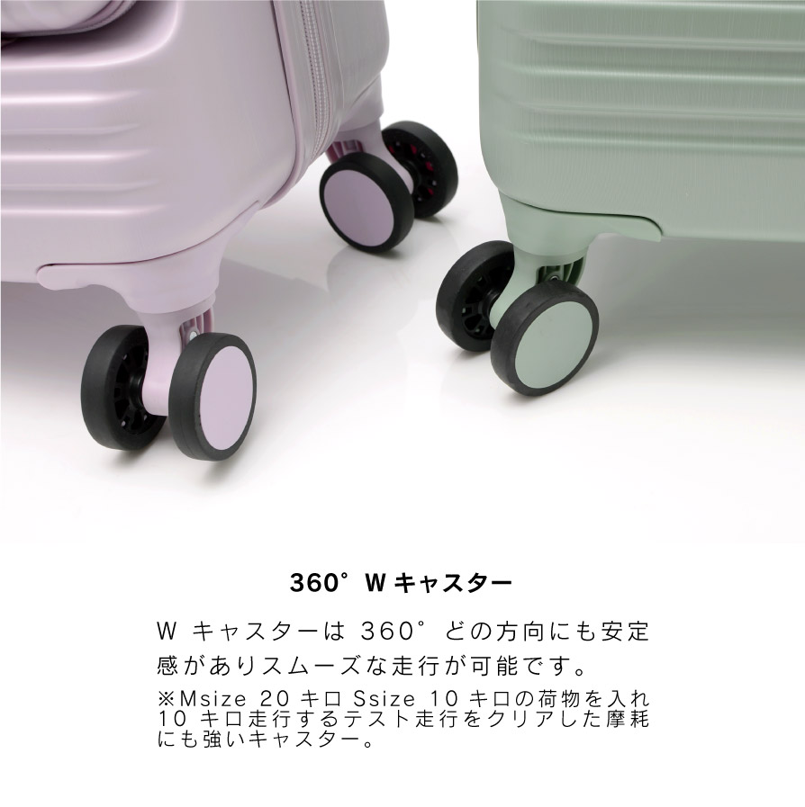 段差や石畳等に強いWキャスター搭載、キャリーバーは多段調整可能。
