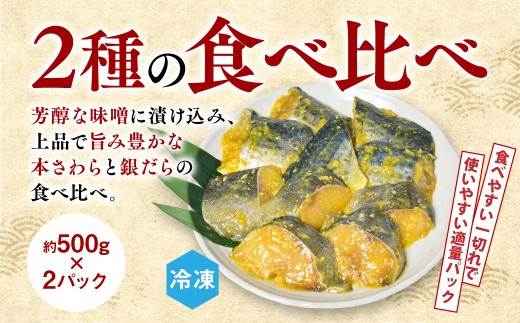 厚切り 「本さわら」と「銀だら」の味噌漬け 食べ比べセット 約1kg 銀だら 本さわら 鱈 鰆 味噌 魚 味付き 焼くだけ 簡単調理 ごはんに合う おかず お弁当 惣菜 冷凍