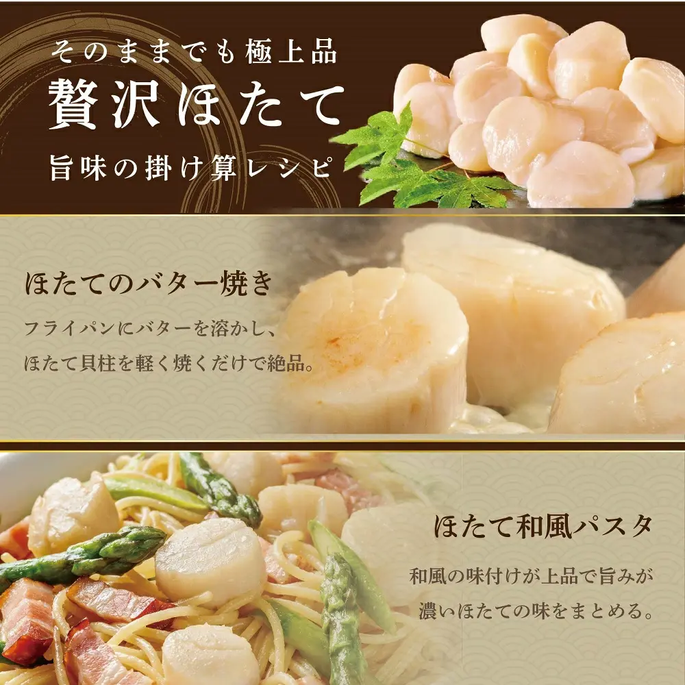 首都圏のお寿司屋さんや高級レストランでも逸品のほたてとして重宝されています。