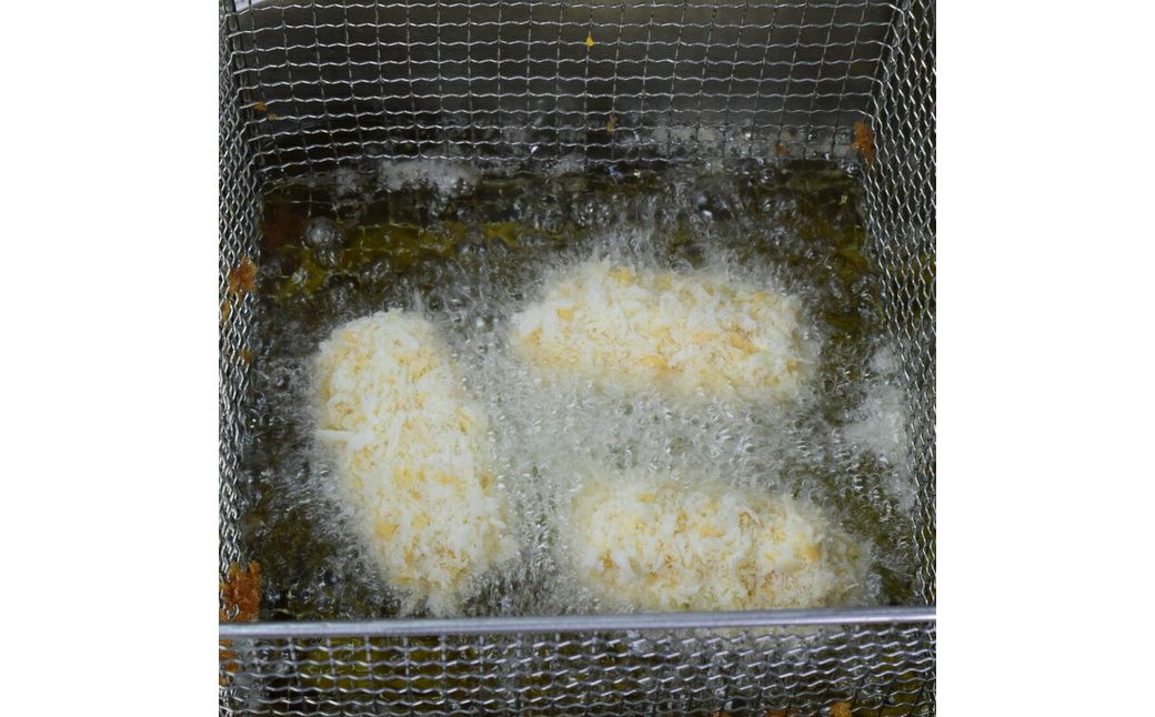 当社独自の急速冷凍技術で鮮度そのままに冷凍し、衣はサクサク、中身はクリーミーに仕上げました。